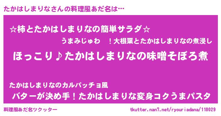 恥ずかしいあだ名 | 『プリティーたかはしまりな』『たかちん』 |