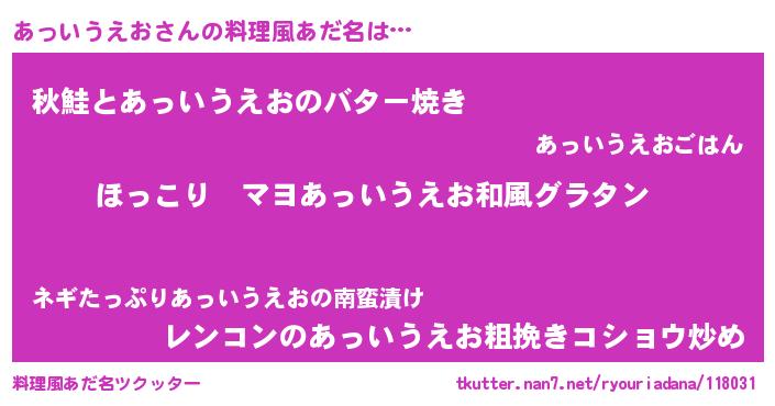 | 胡散臭い通販商品みたいなあだ名 | 『あなたにだけ特別に提供する100年もののヴィンテージワイン…その名も「あっいうえお」』 |