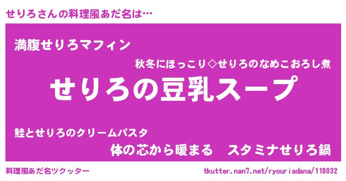 | 胡散臭い通販商品みたいなあだ名 | 『信頼と実績のサプリメント…その名も「せりろ」』 |