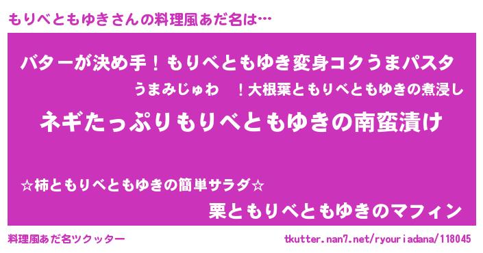 | ヘコむあだ名 | 『もりにゅー』『なまこ酢』 |