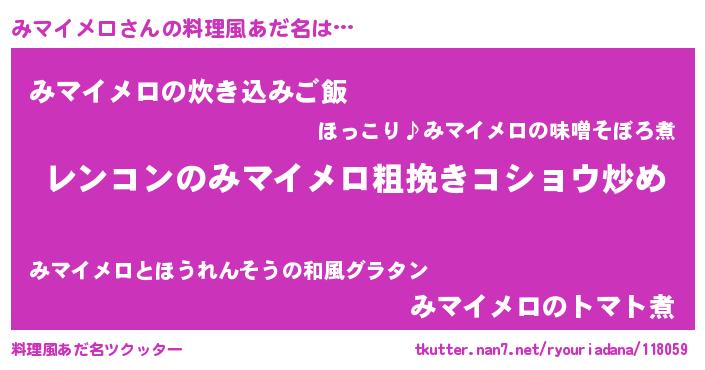 | 意味不明あだ名 | 『自称みマイメロ』『ペロリンみマイメロ』 |