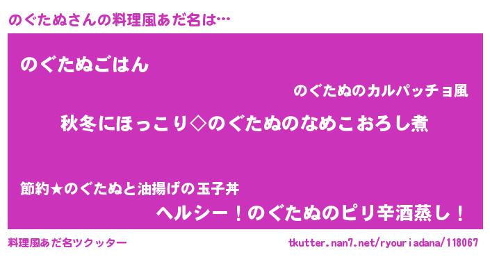 | 男性向けラノベタイトル風あだ名 | 『のぐたぬに滅ぼされるだけの簡単なお仕事です』 |