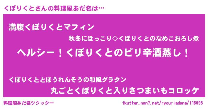 | 意味不明あだ名 | 『自称くぼりくと』『永久保存くぼりくと』 |
