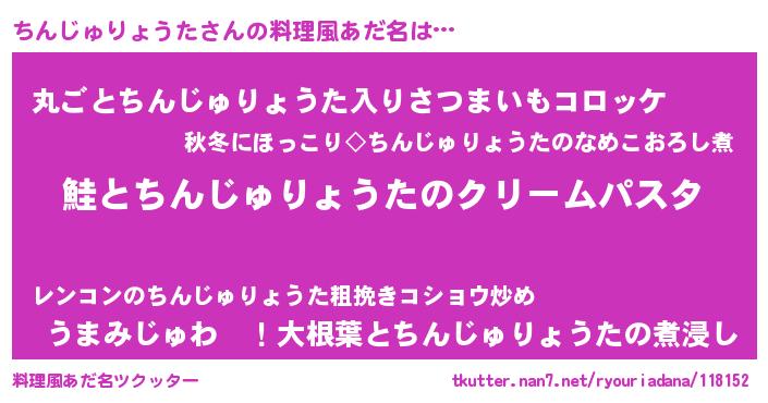 | ヒーロー風カッコイイあだ名 | 『慈愛の使者ちんじゅりょうた』 |