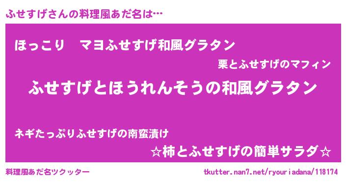 | ヒーロー風カッコイイあだ名 | 『仮面フセダー』『スーパーフセスゲ』 |