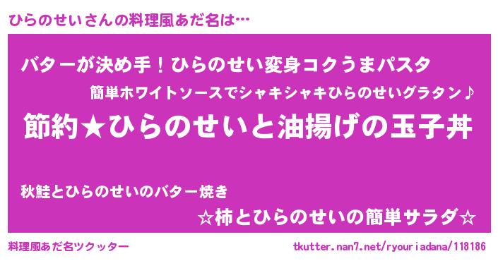 | ヘコむあだ名 | 『ひらもー』『ひらっぺ』『豆乳』 |