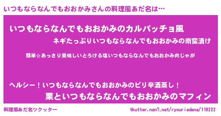 | 意味不明あだ名 | 『永久保存いつもならなんでもおおかみ』 |
