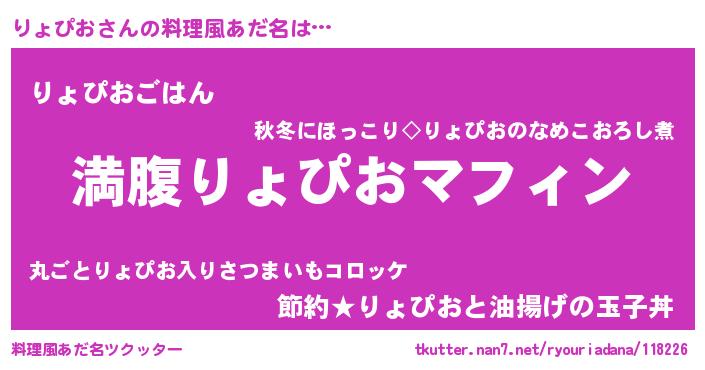 | 意味不明あだ名 | 『永久保存りょぴお』『ペロリンりょぴお』 |