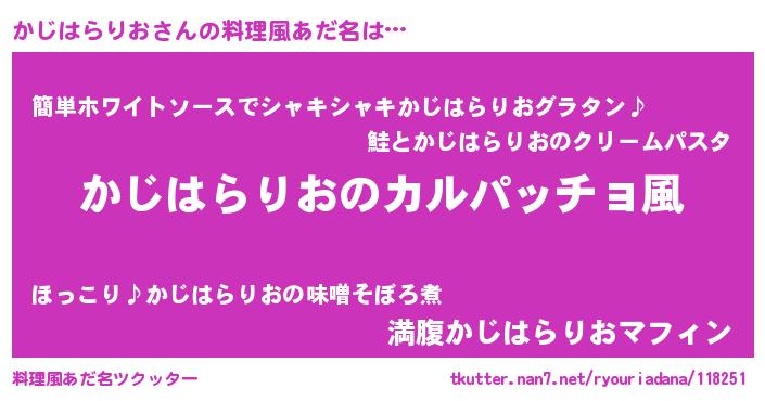 | 意味不明あだ名 | 『住所不定無職かじはらりお(4歳)』 |