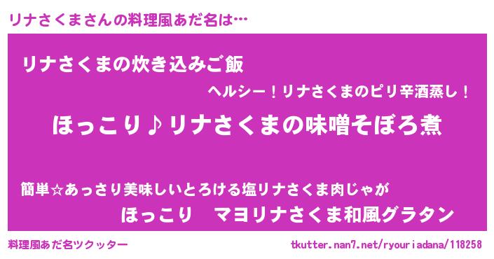| ヘコむあだ名 | 『リナっふぃ~』『リナさくま(震え声)』 |