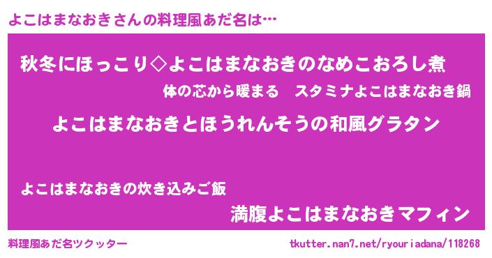 | 欧米人風あだ名 | 『トリンドルよこはまなおき』 |