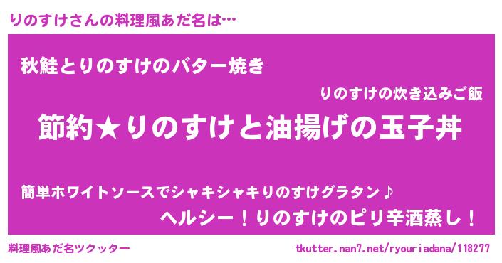 | 女子向けラノベタイトル風あだ名 | 『りのすけ姫と円卓の騎士』 |