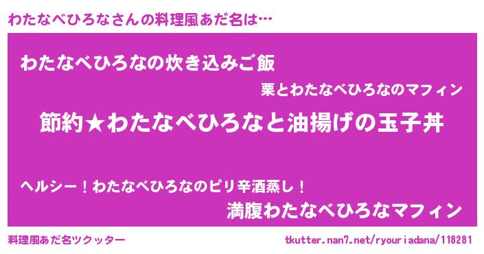 | ヘコむあだ名 | 『わたにゅー』『わたなべひろな(爆)』 |
