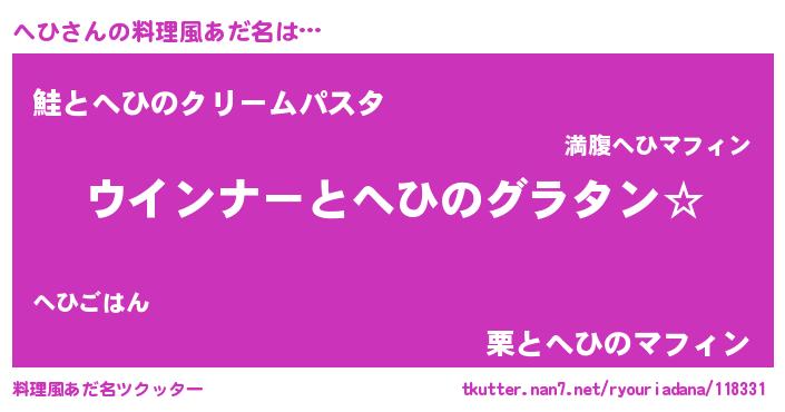 | ヒーロー風カッコイイあだ名 | 『ウルトラへひマン』『慈愛の使者へひ』 |