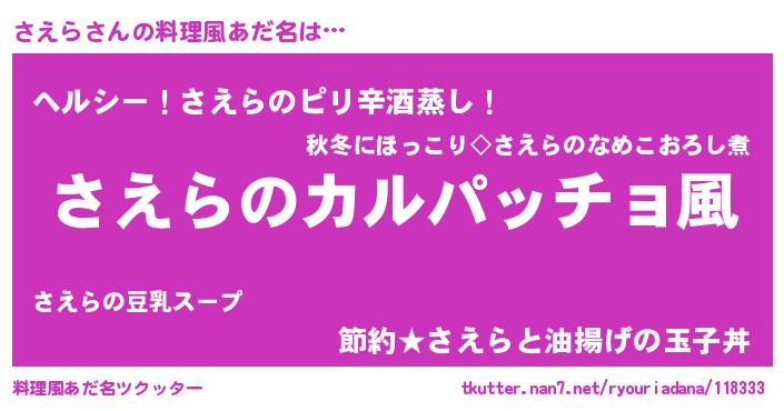 | 意味不明あだ名 | 『住所不定無職さえら(47歳)』『自称さえら』 |