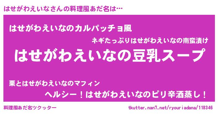 | ポケモン風あだ名 | 『ヒハセガワエイナ』『ハーセイ』 |