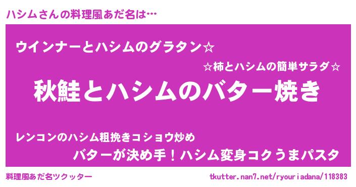 | 胡散臭い通販商品みたいなあだ名 | 『来世でも幸せになれる健康食品…その名も「ハシム」』 |