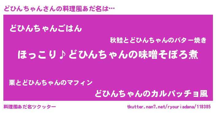 | 女子向けラノベタイトル風あだ名 | 『(仮)どひんちゃんのやんごとなき事情』 |