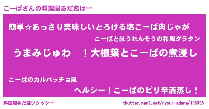 | ヘコむあだ名 | 『レバニラ』『こーば(笑)』 |