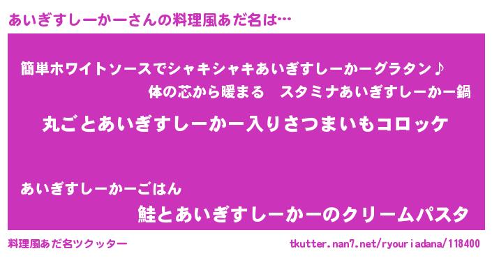 | 意味不明あだ名 | 『住所不定無職あいぎすしーかー(6歳)』 |