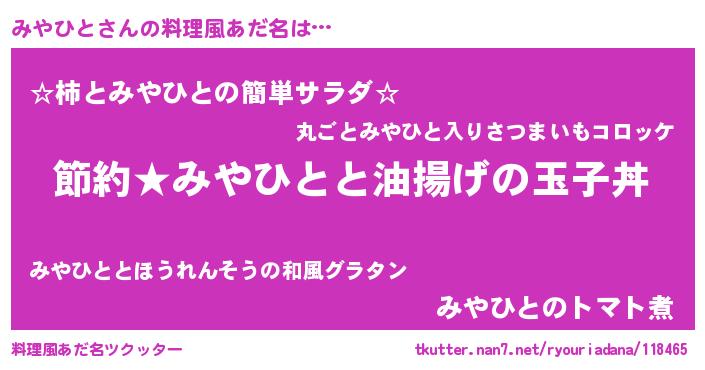 | 意味不明あだ名 | 『ペロリンみやひと』『永久保存みやひと』 |