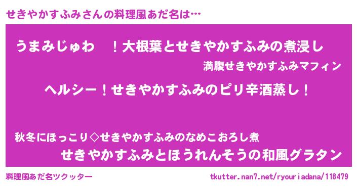 | 意味不明あだ名 | 『自称せきやかすふみ』 |