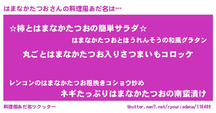| 意味不明あだ名 | 『住所不定無職はまなかたつお(91歳)』 |