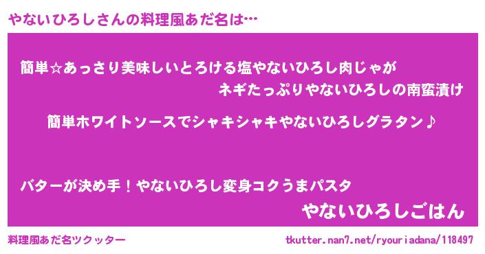 | 胡散臭い通販商品みたいなあだ名 | 『全米が絶賛したサプリメント…その名も「やないひろし」』 |