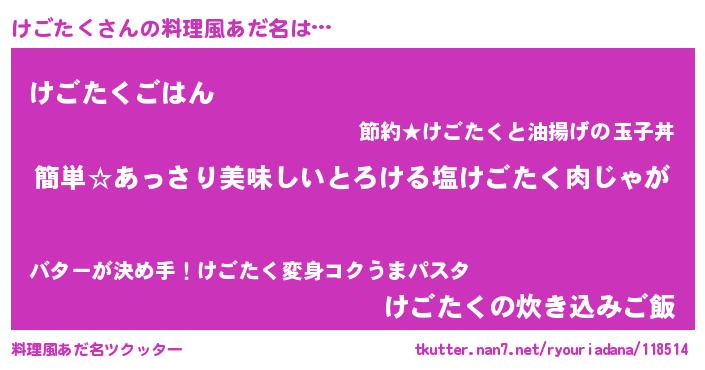 | ヘコむあだ名 | 『けごたく(笑)』『けごにー』『牛乳』 |