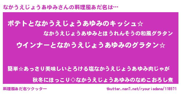 | 肩書あだ名 | 『なかうえじょうあゆみ総理大臣』 |