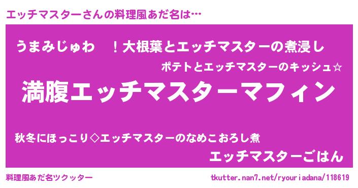 | 男性向けラノベタイトル風あだ名 | 『エッチマスターという概念が存在しない退屈な世界 』 |