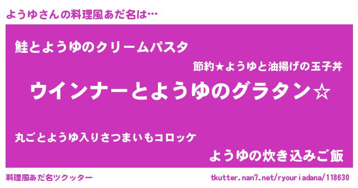 | 女子向けラノベタイトル風あだ名 | 『ようゆ伯爵の花嫁』『死神ようゆの再婚』 |