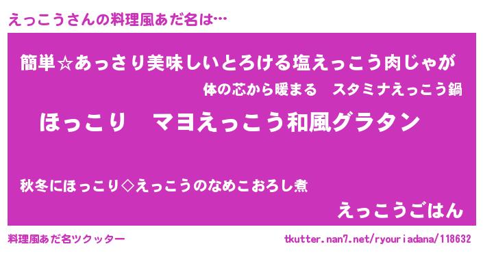 | 胡散臭い通販商品みたいなあだ名 | 『あなたにだけ特別に提供する限定10本のレアな日本酒…その名も「えっこう」』 |