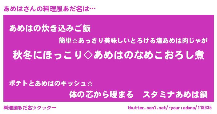 | 欧米人風あだ名 | 『アンジェラ・あめは』『ウサインあめは』 |