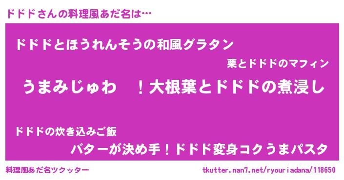 | ヘコむあだ名 | 『酢こんぶ』『ドドにゅー』 |
