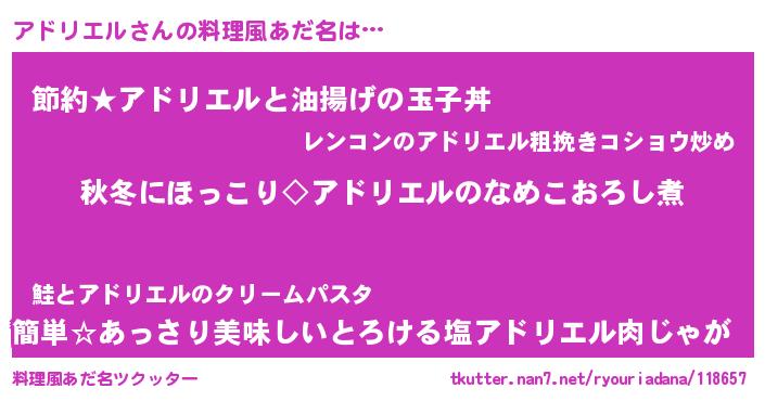 | ヒーロー風カッコイイあだ名 | 『スーパーアドリエル』『ネオアドリエル』 |