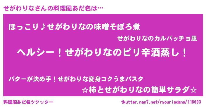| 意味不明あだ名 | 『自称せがわりな』『ペロリンせがわりな』 |