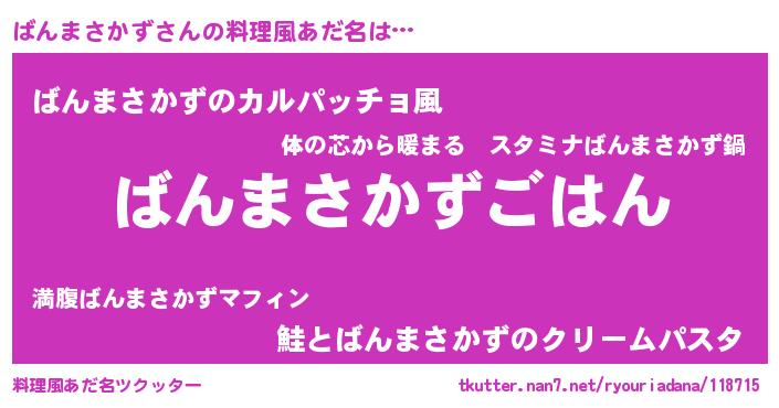 | 男性向けラノベタイトル風あだ名 | 『バンマサカズスレイヤー』 |