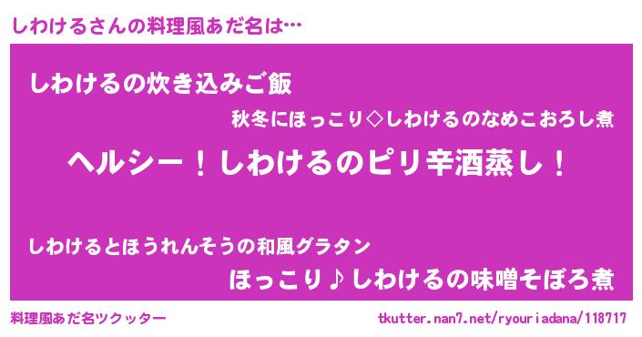 | 男性向けラノベタイトル風あだ名 | 『Re:しわけるから始める異世界生活』 |
