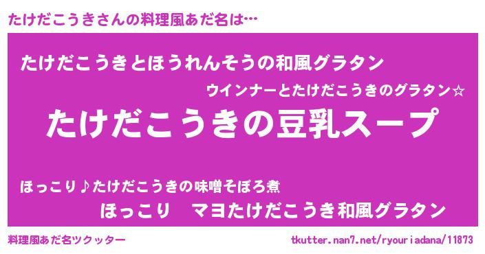 | ポケモン風あだ名 | 『ヒタケダコウキ』『タケキング』 |