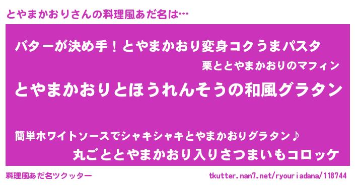 | ヘコむあだ名 | 『とやを』『とやまかおり(笑)』 |