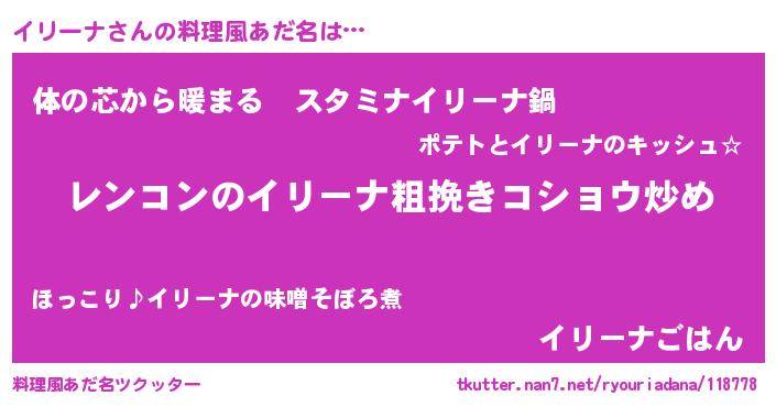 | 意味不明あだ名 | 『自称イリーナ』『イリーナフォーエバー』 |
