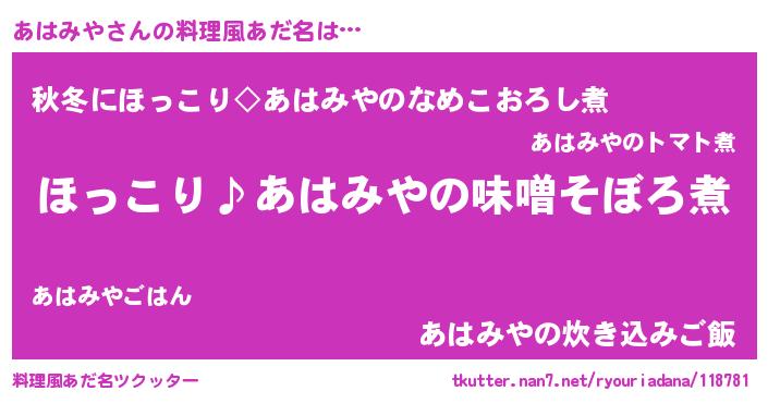 | 恥ずかしいあだ名 | 『プリティーあはみや』『あはちん』 |