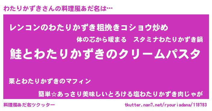 | ヘコむあだ名 | 『わたりかずき(震え声)』『豆乳』 |