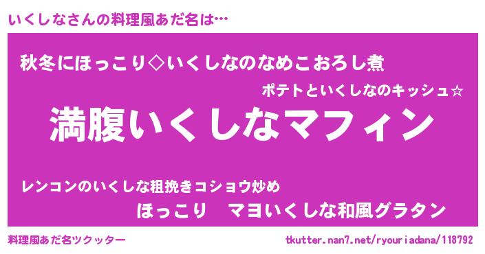 | ヘコむあだ名 | 『いくしな(小並感)』『いく太郎』 |