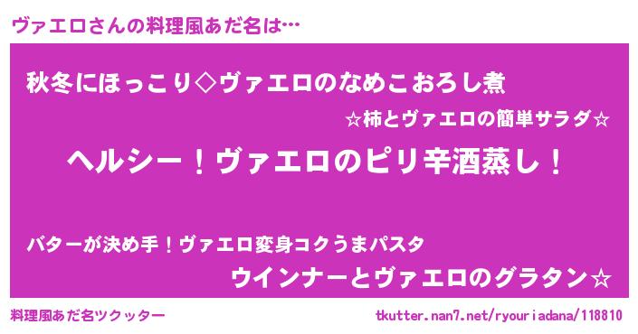 | 男性向けラノベタイトル風あだ名 | 『Re:ヴァエロから始める異世界生活』 |