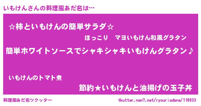 | 胡散臭い通販商品みたいなあだ名 | 『全米が絶賛したサプリメント…その名も「いもけん」』 |