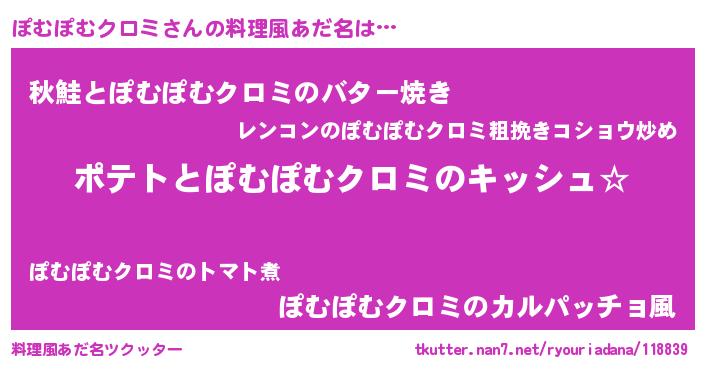 | 意味不明あだ名 | 『とにかく怪しいぽむぽむクロミ』 |