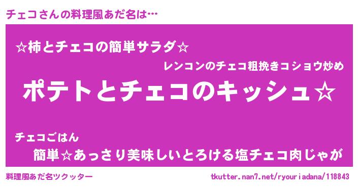 | 女子向けラノベタイトル風あだ名 | 『チェコの卵を拾いまして』 |