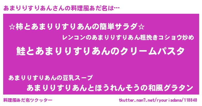 | 女子向けラノベタイトル風あだ名 | 『死神あまりりすりあんの再婚』 |